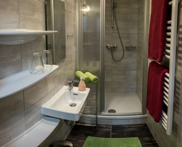 Das erste Badezimmer verfügt über eine Dusche und zwei Waschbecken. Im zweitem Bad befindet sich eine Dusche und ein Waschbecken. Beide Bäder sind räumlich getrennt zu den WC´s.